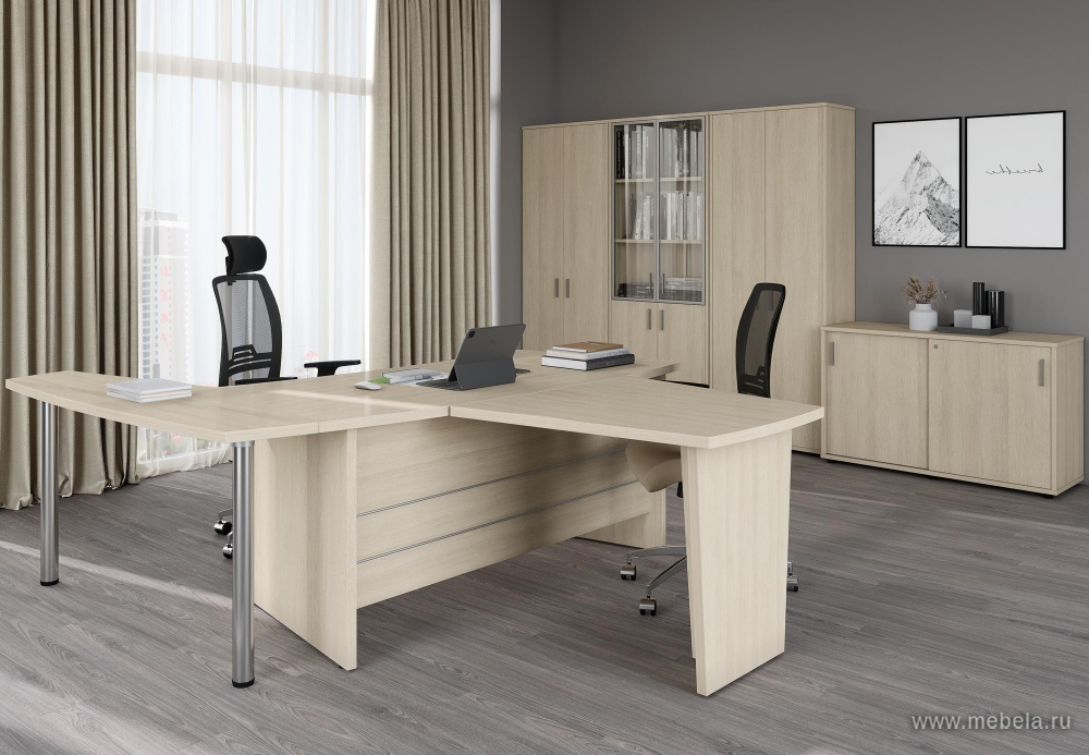 Скучное офисное пространство преобразится с кабинетами руководителя (Гранд) Grand в цвете дуб феррара. Их декоративные элементы и динамичные линии делают интерьер современным. Комбинированное использование разных материалов создает неповторимый образ офисной мебели.